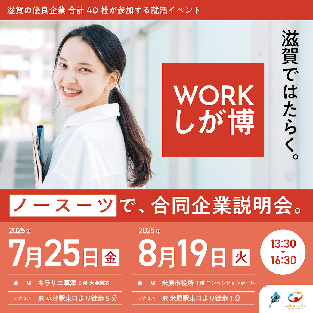 弊社は来る7月25日(金)にキラリエ草津にて開催される「WORKしが博」に参加致します。